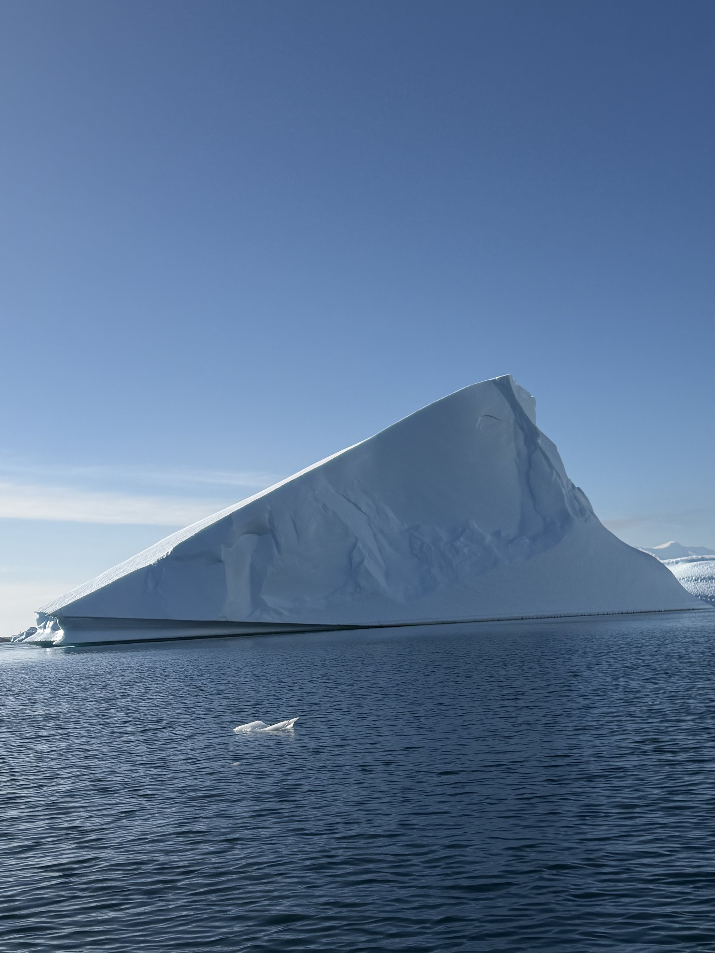 Everything is blinding white and eye-watering blue: glassy aqua water that’s so clear and crisp you can see through it to the base of the icebergs, ice so compacted and opaque it’s luminous. Gliding through this pristine environment I’m filled with a sense of awe and gratitude for being here, for seeing all this in 3D rather than on a screen, and for the absolute brilliance of mother nature.