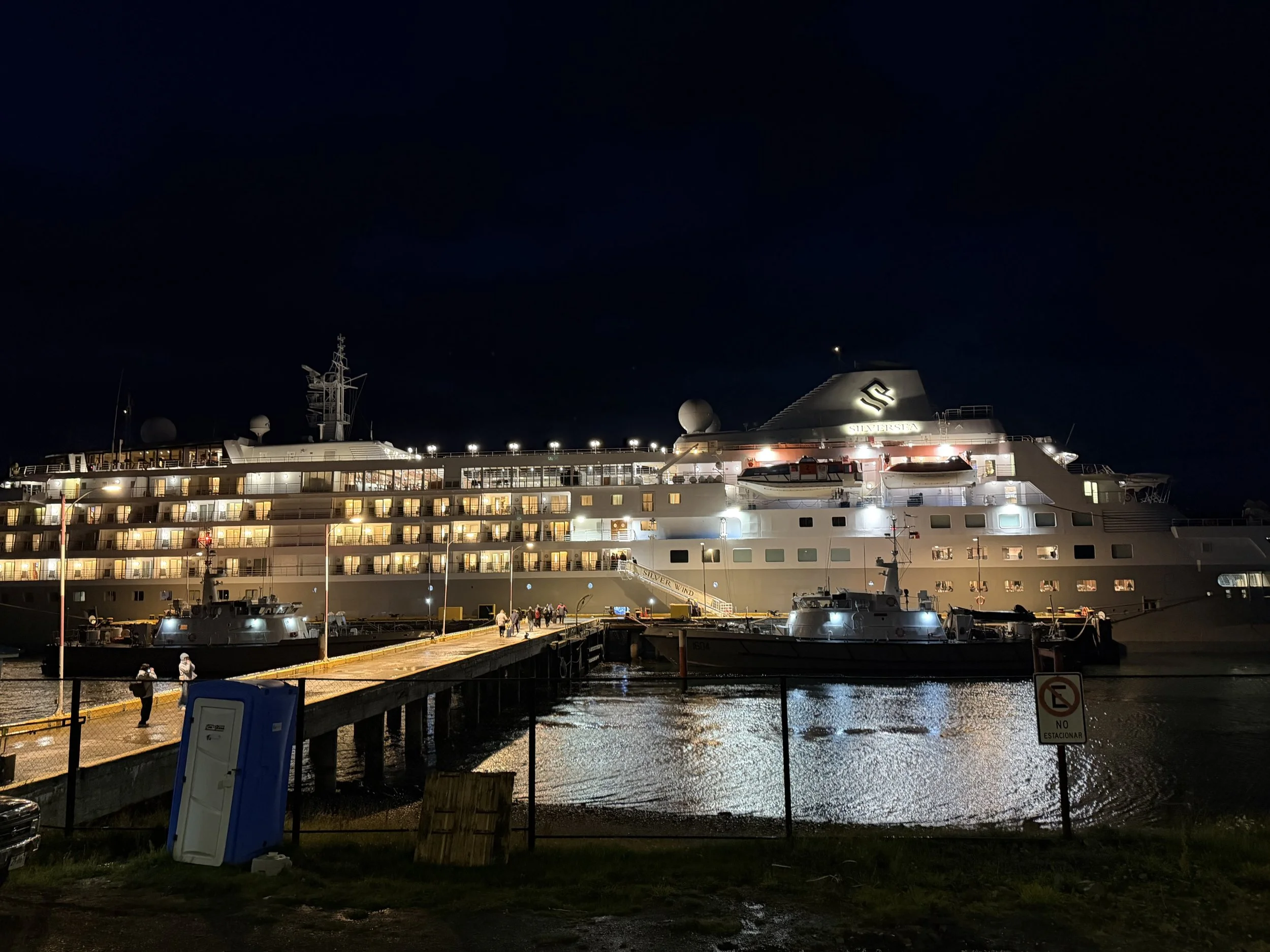 It’s hard to explain to people who are not flight phobic but the sheer terror of being convinced you’re going to die is real. I was cold and then hot and there were tears. It probably didn’t help that I was seriously sleep deprived (having lain awake the previous night worrying that I would die either on the flight or the boat, so far so good on both fronts) and had just read a particularly emotional scene in The Great Alone by Kristin Hannah. By the time we descended through a woolly blanket of cloud and came to a stop on the rain-soaked runway I’d managed to pull myself together and climb onto the bus that would take us to the ship.